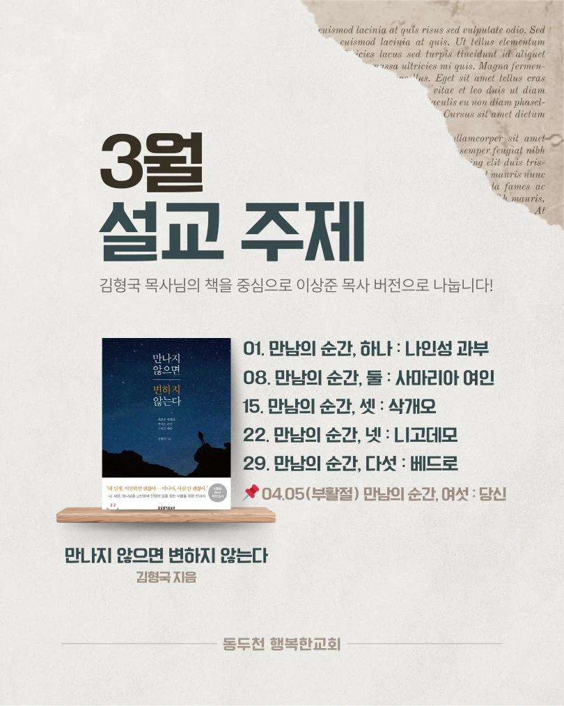 3월 설교 주제를 소개합니다